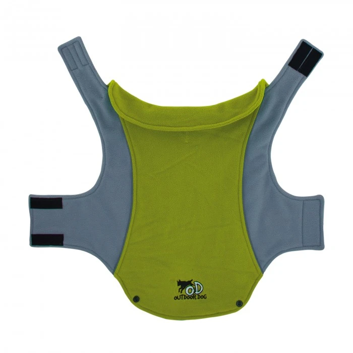Both layers have velcro fastenings, a fold back collar, optional rear leg straps, and a harness hatch. The two layers connect together with press studs and clever pockets to tuck the straps of the inner layer into the straps of the outer layer.