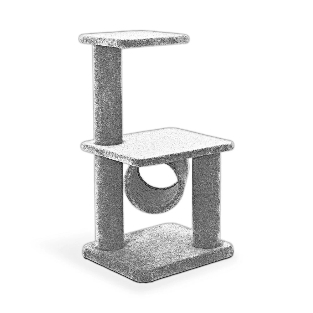 A dual-column, dual platform design creating a variety of scratch, sleep, play options
