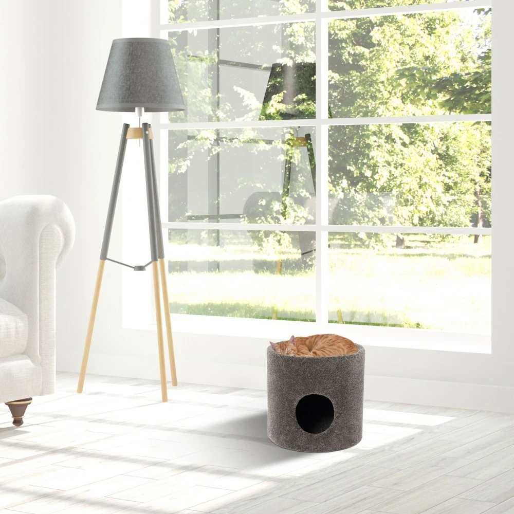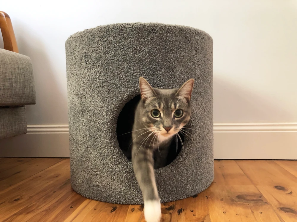 The Bosscat Franco is a cat cave, sleeping nook, and scratcher in one stylish compact design. Made to entertain both cats and kittens alike hours as they play in, out, or on top of this scratching post. When playtime is over your cat can curl up in the hidden cave within, or in the top nook above, to recharge.