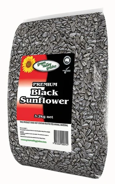 Green Valley Black Sunflower seeds are a highly palatable, high fat seed suitable as part of the diet for many parrot, poultry and livestock varieties.