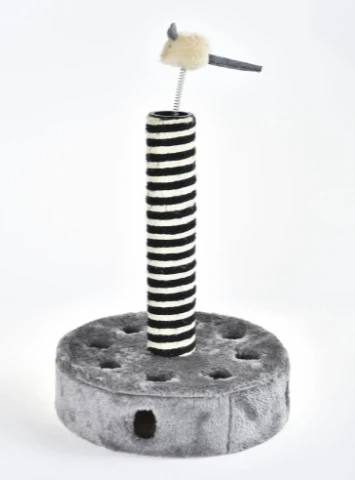 The Kitten Foraging Pole has a sisal scratching post, topped with a mouse on a spring.