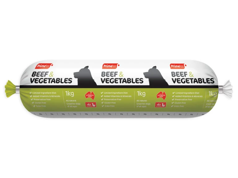 Prime100 Dog Rolls are a fresh, healthy and balanced dog roll. They have been designed to be fed as a complete diet. They can also be fed in combination with dry food, if that suits your dog best. Each variety has different features. There are many single animal protein varieties, to limit the possibility of allergic reactions and sensitivities. As well as advanced novel protein varieties such as salmon and kangaroo. Once open they are best used within 5-7 days, sealing the open end with aluminium foil. They can also be pre-portioned and frozen for longer storage.