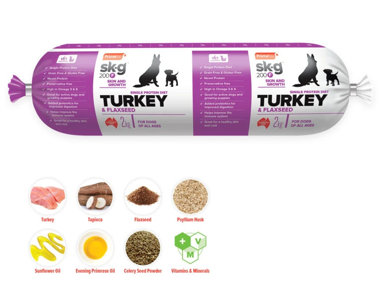 Designed for puppies and active dogs. Also suitable for dogs of all sizes. Free from gluten, grains and preservatives. Made with a single meat protein to reduce chance of allergies and food intolerance. Whole turkey (meat and frame) contains essential calcium and glucosamine, making this variety suitable for large dogs. Added prebiotic and fibre from whole ground flaxseed.
